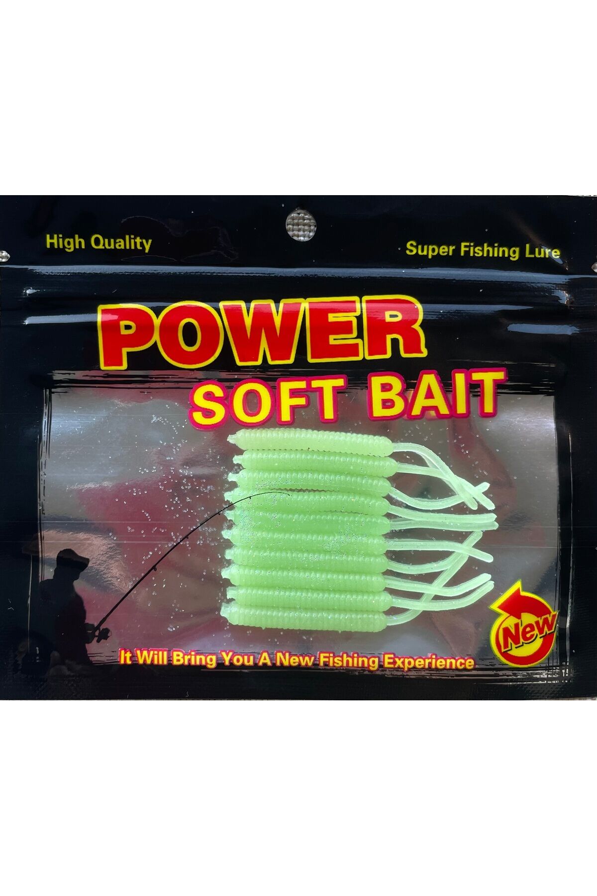 10'lu Paket Silikon Kurt Balık Yemi 5 cm Fosforlu Simli Yeşil